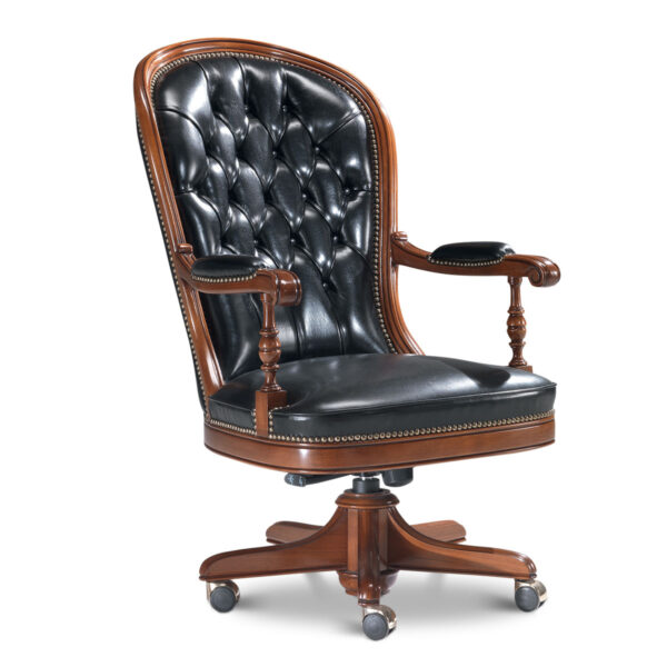 La vera essenza di un ufficio di classe parte dalla seduta: le nostre poltrone Chesterfield in pelle pieno fiore combinano la celebre trapuntatura capitonné, simbolo di artigianalità inglese, con linee rivisitate in chiave moderna per un impatto scenico senza tempo.