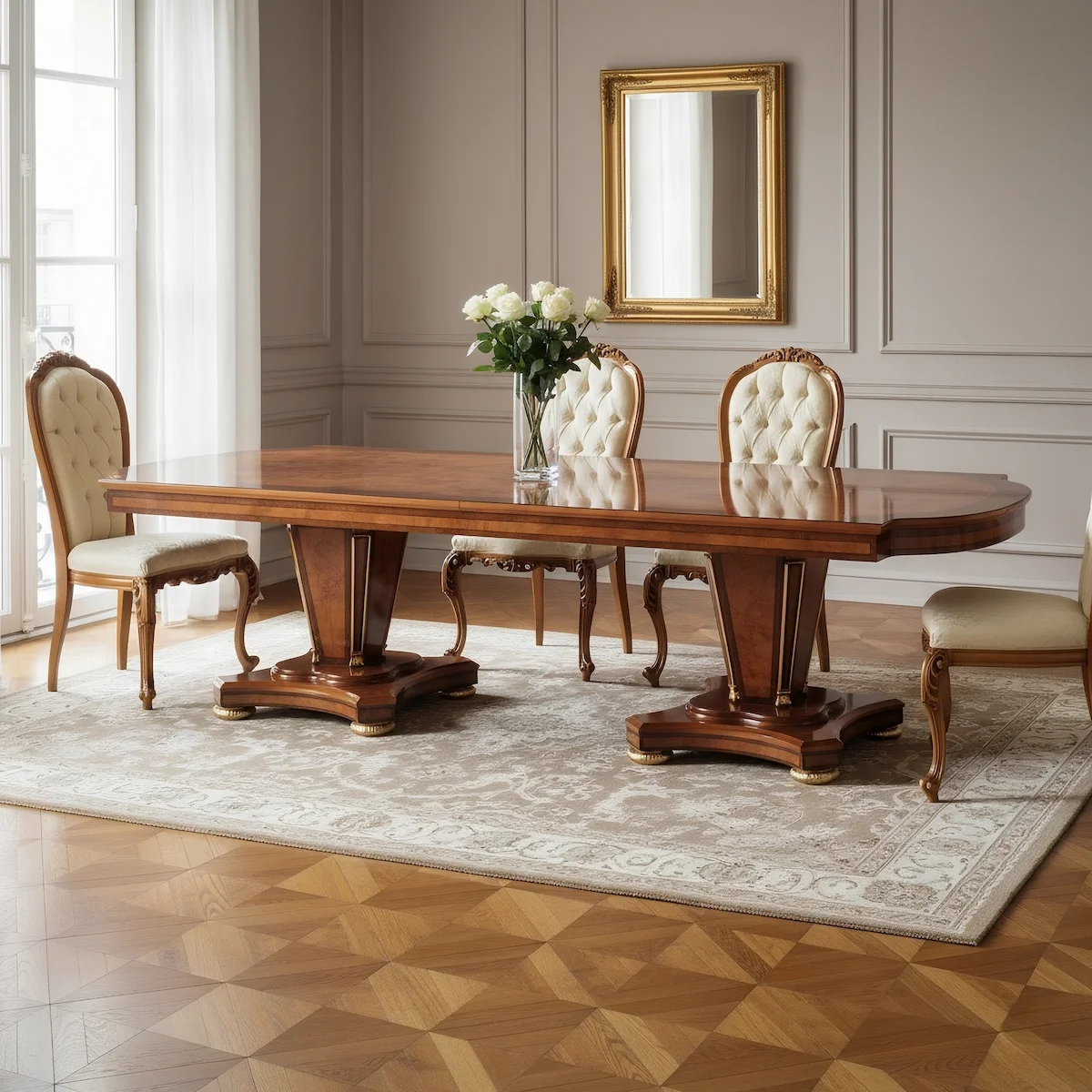 Impero rect. table with 2 pedestals