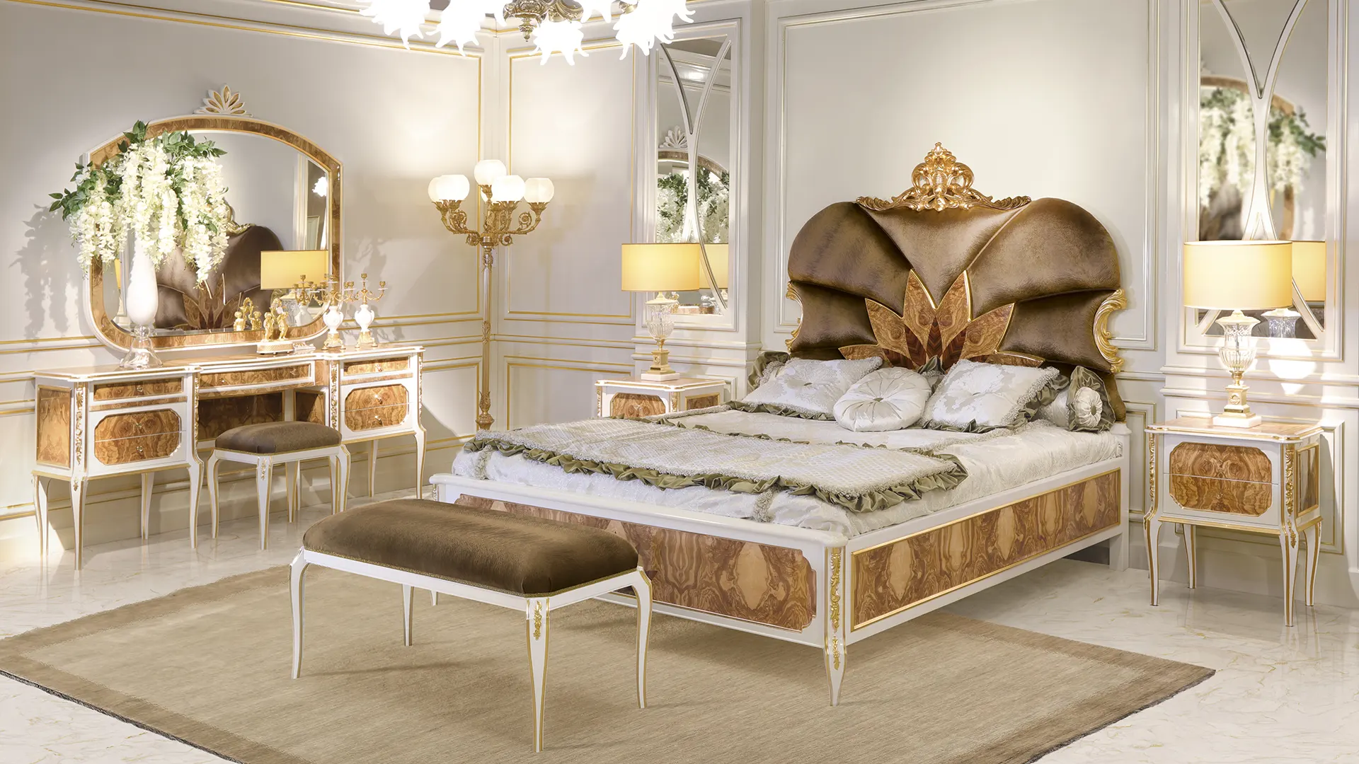 С несколькими новыми элементами, созданными для оформления спальни — коллекция ALBA привлекает внимание эффектным шпоном из оливкового капа и отделкой высокого глянца.